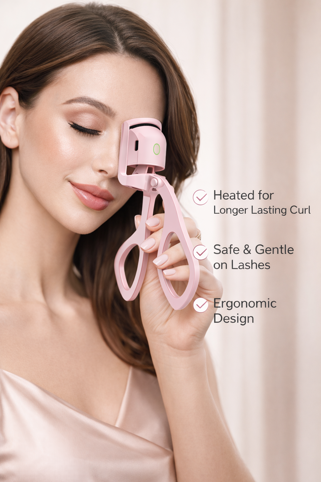 Absolutely. Unlike mechanical clamps that use pressure, this device uses gentle heat to structurally "set" the curl, similar to a hair curling iron. This gravity-defying technology ensures your lashes stay lifted, bouncy, and wide-open for a full 24 hours until you wash your face.